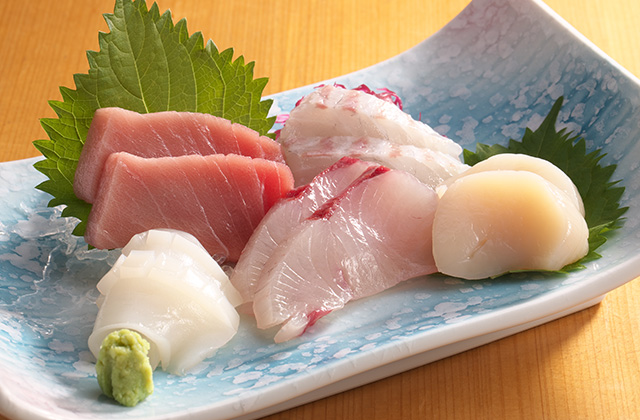 A colorful assortment centered on Mie Ise tuna that also features sea bream, squid, and salmon. You can enjoy seasonal fish.